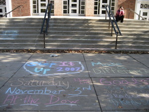On Saturday November 3, 2007, 0ver 100 people gathered at the athletic complex of Albion College, Michigan for a Climate Change Awareness Fair as part of the national day for climate change action, Step It Up 2007. Attendees included faculty, students, parents of the students, children, community members, the president of Albion College and Senator Mark Schauer from District 19 of Michigan. 22 booths composed of student and community organizations and professors represented different aspects of climate change. Topics ranged from peak oil production and the scientific basis on climate change to Mountain Top Removal and alternative fuel development. Austin Gee, guitarist and Crimson Blue, band provided entertainment and music throughout the event. An electric car in which the College is looking into purchasing was also featured. Senator Mark Schauer talked on Michigan’s economy and how green jobs could improve the state of Michigan’s budget crisis. He said that alternative energies such as wind and solar, which don’t emit CO2 and would help reach the reduction goal of CO2 80% by 2050, have a lot of potential in the state of Michigan. Geology Professor and Director of the Environmental Institute Dr. Timothy Lincoln talked on Albion College’s direction toward sustainability. Students also had an interactive artistic documentary of local and campus leaders speaking on obstacles pertaining to climate change action and ways to overcome them.